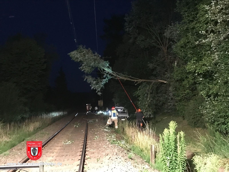 Auf der Eisenbahnstrecke war ein Baum in die Oberleitung gestürzt. Der zunächst gemeldete Bahndammbrand stellte sich als Falschmeldung heraus. Allerdings mussten ca. 40 Fahrgäste eines Zuges, der auf Grund des Oberleitungsschadens auf offener Strecke stehen bleiben musste, zum Haltepunkt Schney verbracht werden, wo sie auf Schienenersatzverkehr umsteigen konnten.
